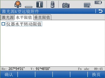 TS15全站仪角度受限可能因为误操作或其它原因,全站仪中的角度限值被选定,系统将无法控制全站仪进行方位检查或定向后无法转向激光靶。此时需检查相关设置,取消角度限值。
