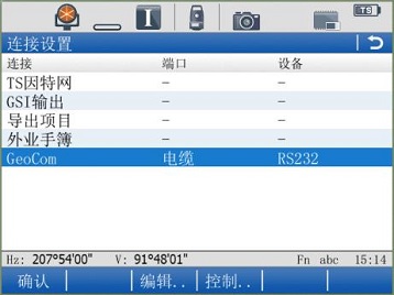 TS15全站仪波特率设置在送检、送修或重置后,全站仪的波特率设置都很有可能发生变化,需要重新设置才能与通讯盒恢复数据通讯,否则系统将显示"全站仪超时"或"全站仪未响应"。